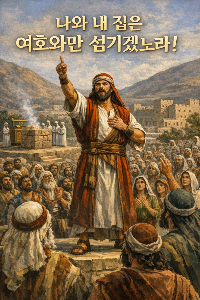 오늘 여호수아 앞에 선 이스라엘처럼, 야곱의 우물가 사마리아 여인처럼 고백합시다. “주님, 제가 의지하던 가짜 남편들을 이제 제하여 버립니다. 오직 주님만이 나의 유일한 참사랑이며 생수이십니다.” 지금 여러분 마음속의 ‘이방 신’인 재물, 자존심, 안락함을 즉시 제거하십시오. “우리가 우리 하나님 여호와를 섬기고 그분의 목소리만을 청종하겠나이다!” 이 결단이 여러분의 삶을 새롭게 할 것입니다.