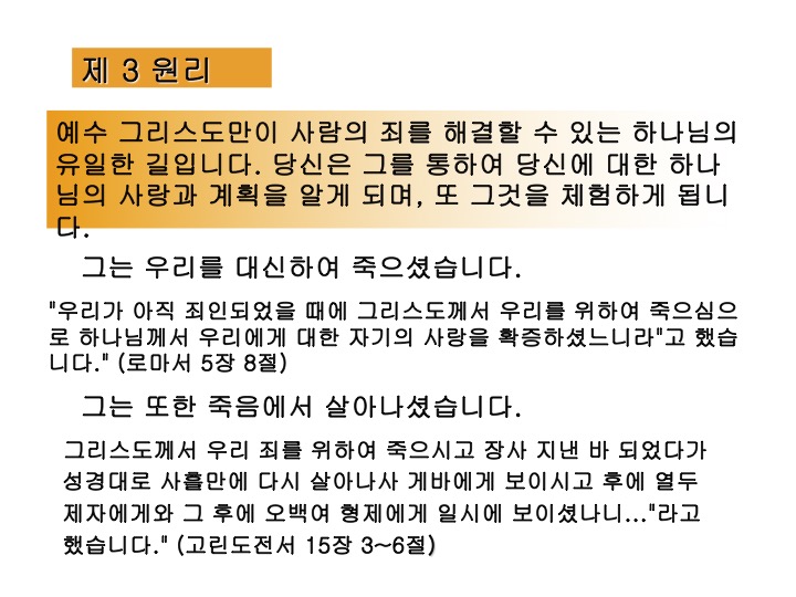 성경 전체의 내용을 간단하게 4가지 원리로 설명합니다.